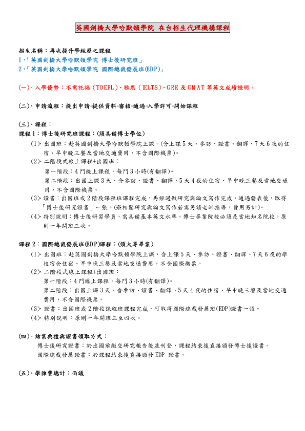 英國劍橋大學哈默頓學院 在台招生代理機構課程 回首頁.回課程主頁.1-10頁.11-18頁