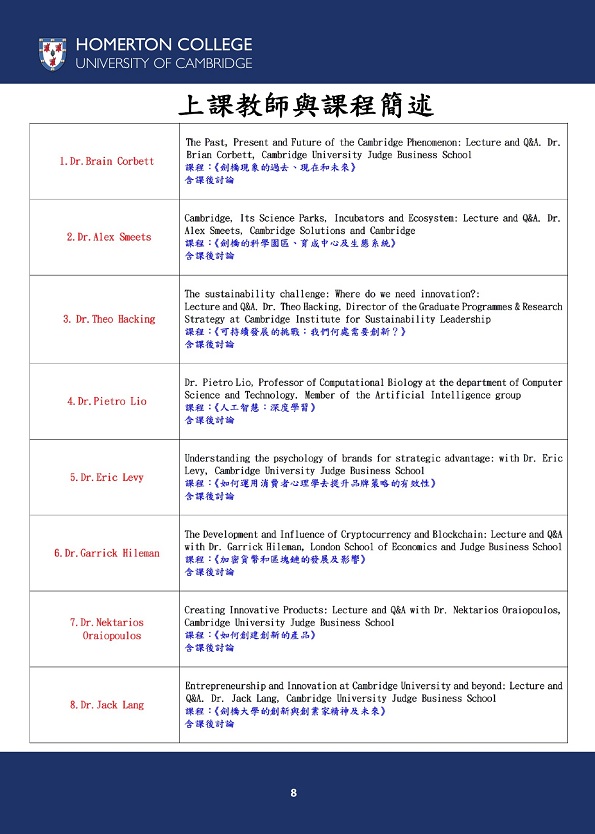 英國劍橋大學哈默頓學院 在台招生代理機構課程 回首頁.回課程主頁.1-10頁.11-18頁